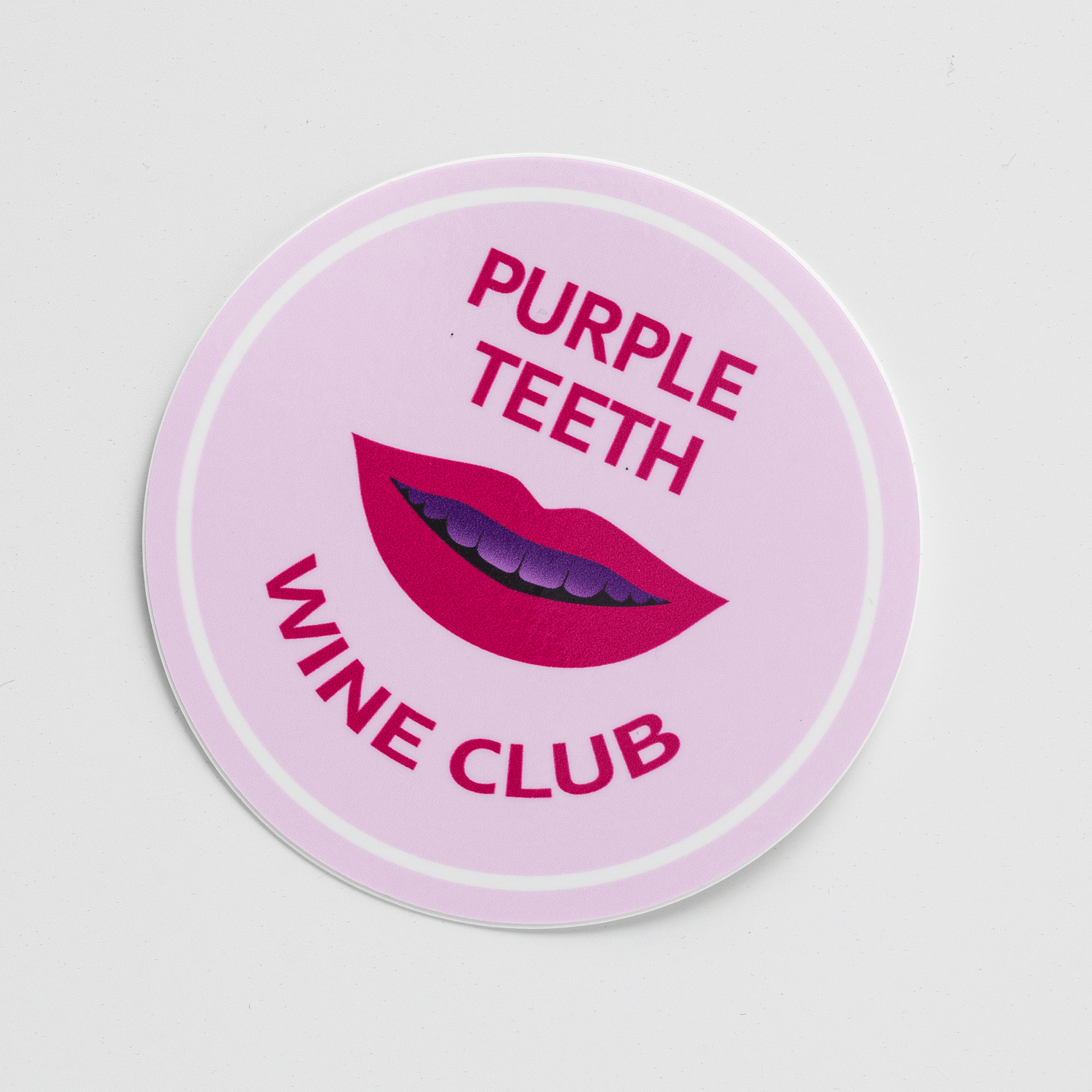 Purple teeth is a small price to pay for red wine lovers. Now there's a sticker to recognize your sacrifice and dedication to red wine. Our Purple Teeth Wine Club Sticker is 3" round, made from durable vinyl with a glossy finish. Designed by us, and printed in the USA, it's a fun memento to hand out at your next gathering of like-minded red enthusiasts.