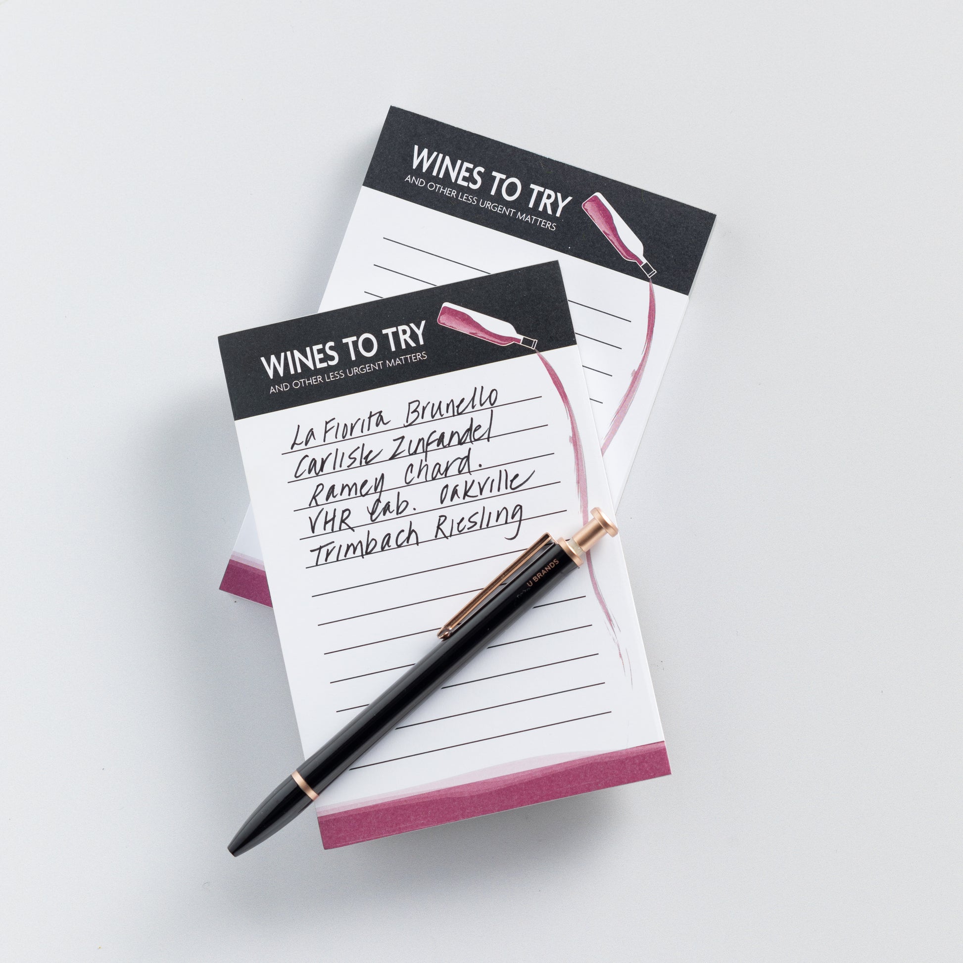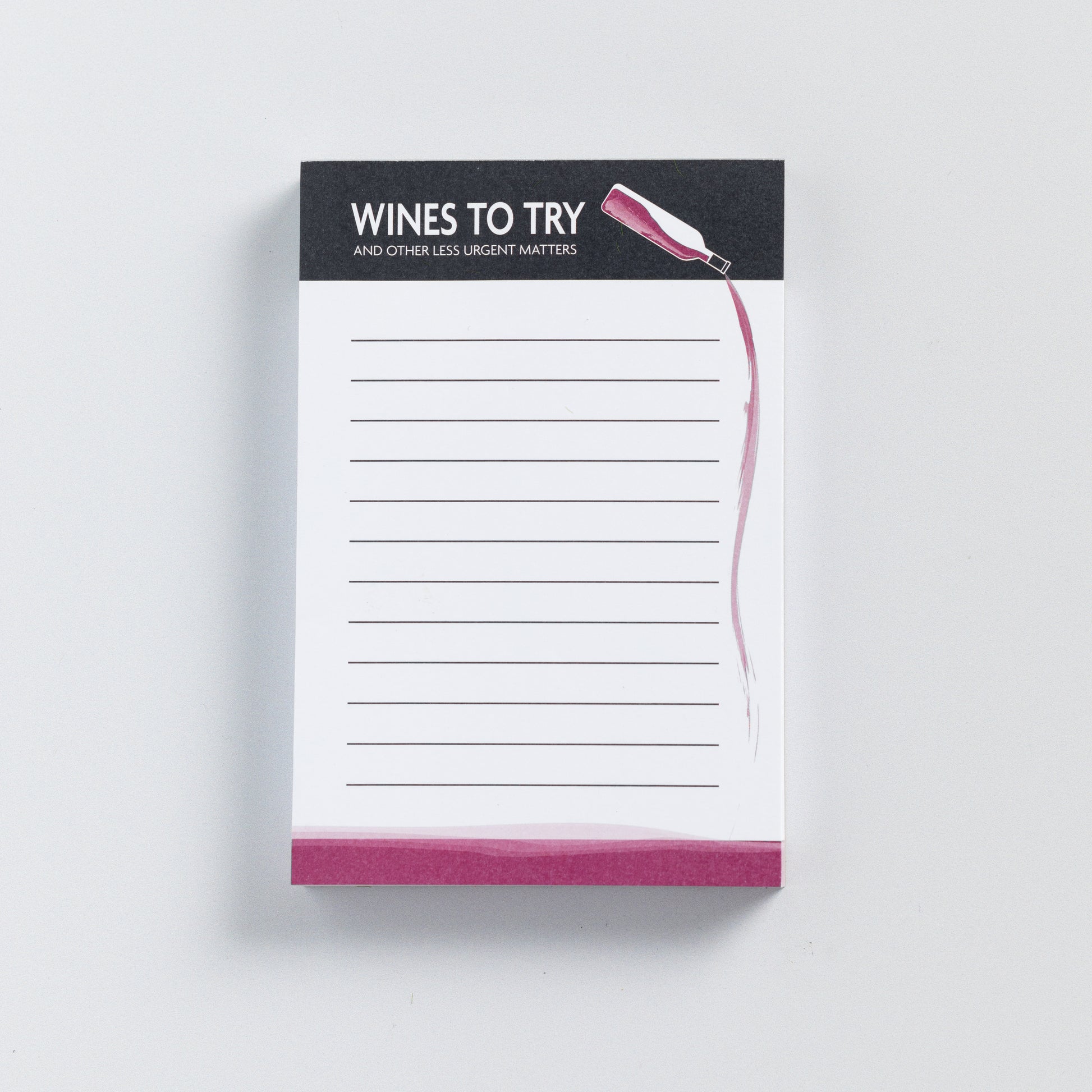 Get your priorities straight with the Wines To Try (And Other Less Urgent Matters) Notepad. A perfect gift for your favorite wine lover and/or procrastinator. 100-page, 4" x 6" notepad with chipboard backing from Questionable Designs, featuring ample room for curating your wine tasting bucket list or other tasks, should you find the time.